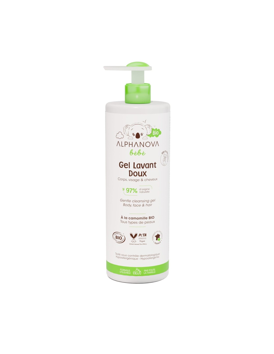 Alphanova Bébé Gentle Cleansing Gel on spetsiaalselt välja töötatud keha- ja juustevahend beebidele, mis on valmistatud taaskasutatud ja taaskasutatavatest materjalidest pudeli ja etiketiga. See õrn puhastusgeel on mõeldud kasutamiseks sünnist saati, puhastades beebi keha, nägu ja juukseid igapäevaselt. Geeli koostis sisaldab 97% looduslikku päritolu koostisosi ning see on sulfaadivaba, parabeeni- ja seebivaba, tagades beebi naha puhtuse ja pehmuse. Lisaks sisaldab see orgaanilist kummelit, mis rahustab beebi nahka ja kaitseb seda kuivamise eest. Kreemjas vaht ja kerge apelsiniõie lõhn pakuvad tõeliselt lõõgastavat kogemust. Geeli võib kasutada igapäevaselt kehal, näol ja juustel ning see ei ärrita silmi. Lisaks biolagunevale ja vegan koostisele on see ka sertifitseeritud mahetoode.