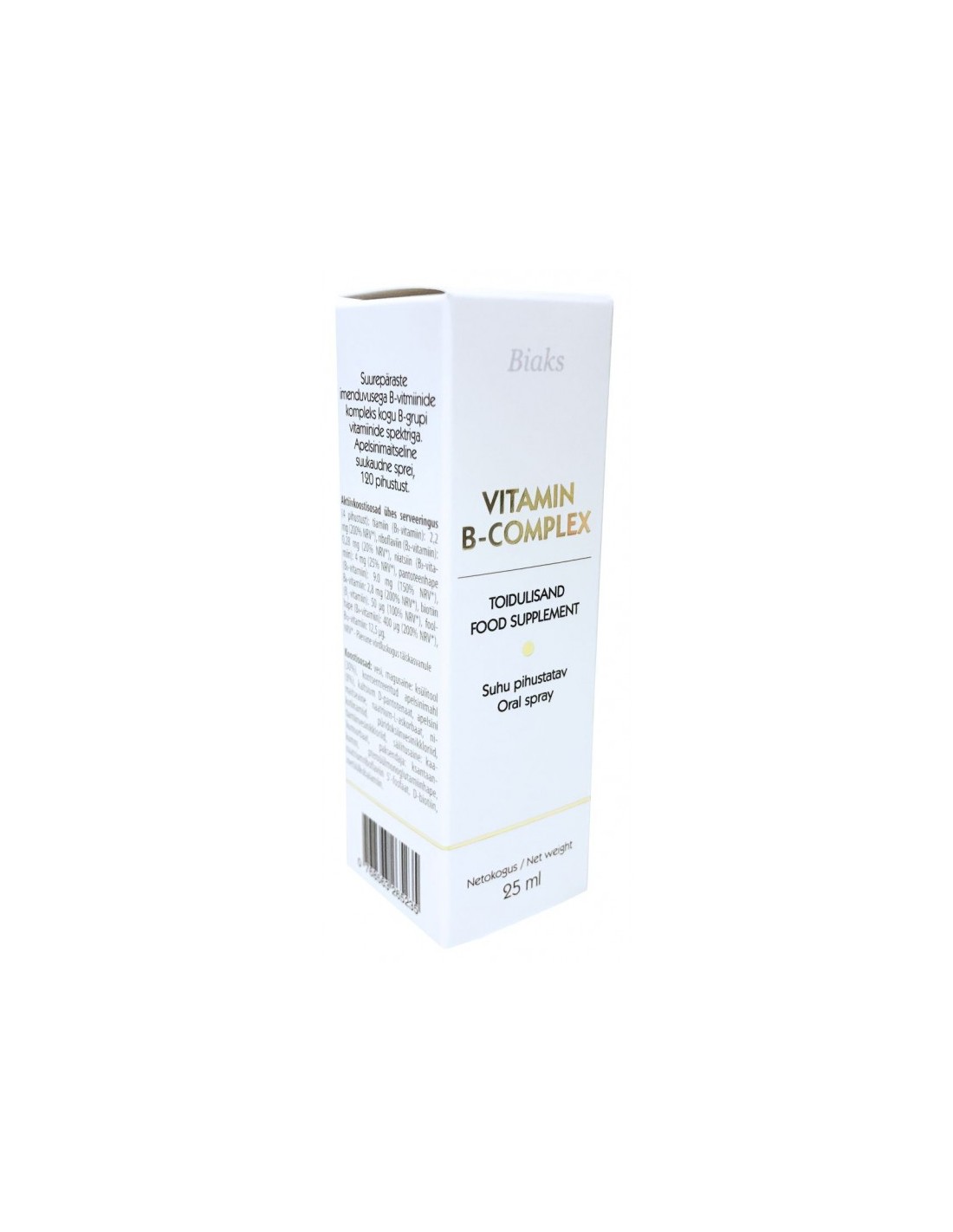 Suurepärase imenduvusega B-vitamiinide kompleks, mis sisaldab kogu B-grupi vitamiinide spektrit, on saadaval suukaudse spreina kujul. See toidulisand on mõeldud neile, kes soovivad tagada oma kehale piisava koguse B-vitamiine mugaval ja lihtsal viisil. Sprei on apelsinimaitseline ning iga pudel sisaldab 120 pihustust.