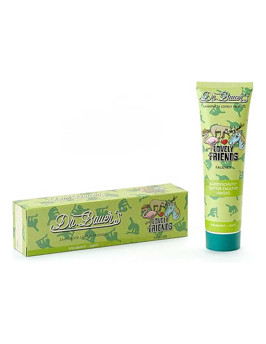 Dr. Bauer´s Lovely Friends hambapasta on tõeline revolutsioon laste hambapasta turul, pakkudes hambaid pestes mängulusti ja uusi maitseelamusi. Spetsiaalselt lastele ja teismelistele välja töötatud hambapasta on loodud nii, et hambapesu muutuks lõbusaks rutiiniks, mida lapsed igapäevaselt ootavad. Erinevad maitsed ja sädelev koostis muudavad selle hambapasta kasutamise unikaalseks kogemuseks, mis paneb lapsed rõõmuga oma hambaid pesema. Hambapasta on nii maitsev, et see tekitab soovi hambapesu mitte kunagi lõpetada. Nautige värsket piparmündi ja rohemündi maitset. Juhuks, kui maitsest Sinu ainulaadseks harjamiskogemuseks veel ei piisa, oleme hambapastasse lisanud väikesed sädelevad laiskloomad, mis harjamisel täielikult lahustuvad.
