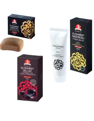 Dr. OHHIRA® Kampuku iluseep, Magoroku nahahooldusõli ja DELUXE 5-aastane retsept 12 sordi hapendatud piimhappebakteritega 60tk