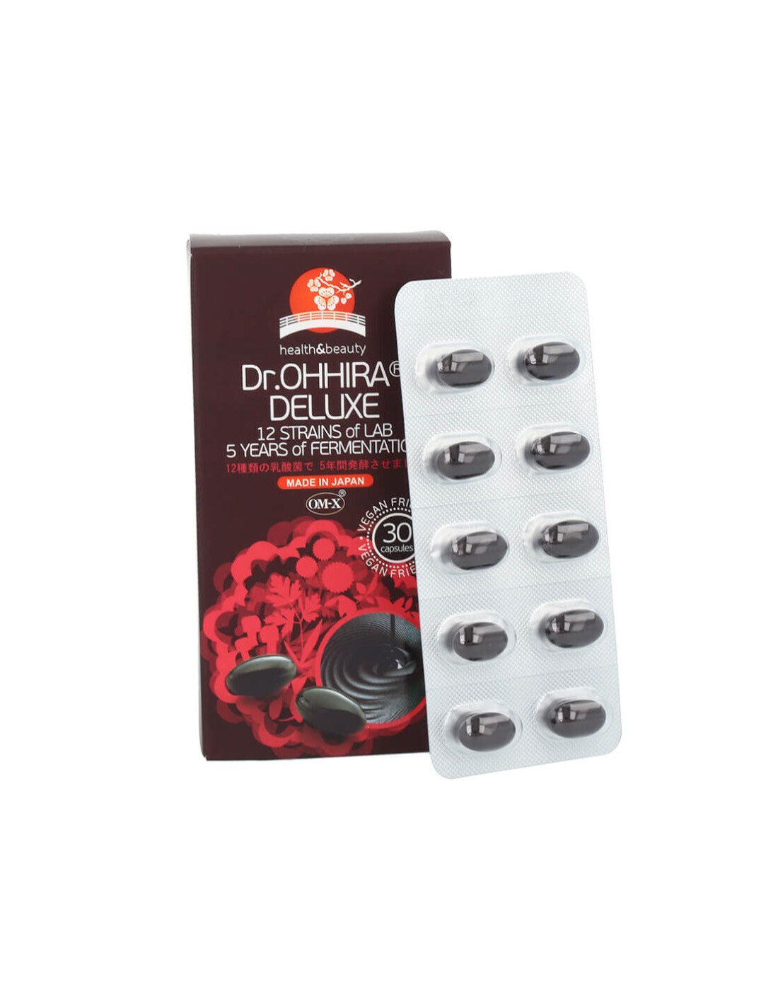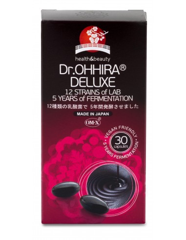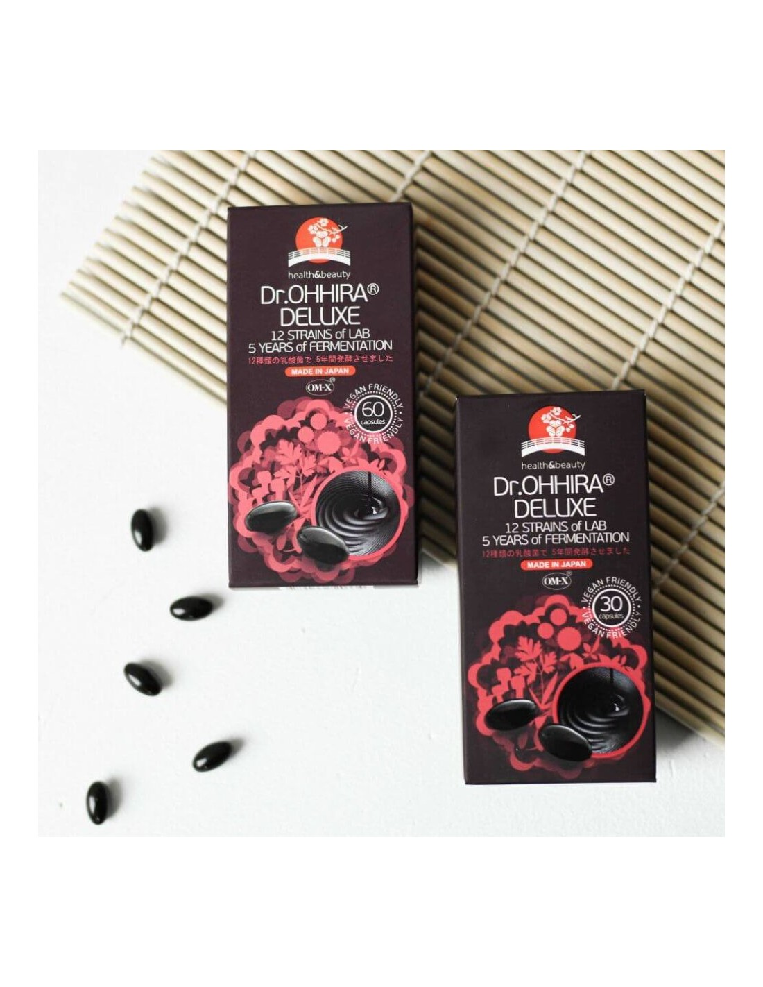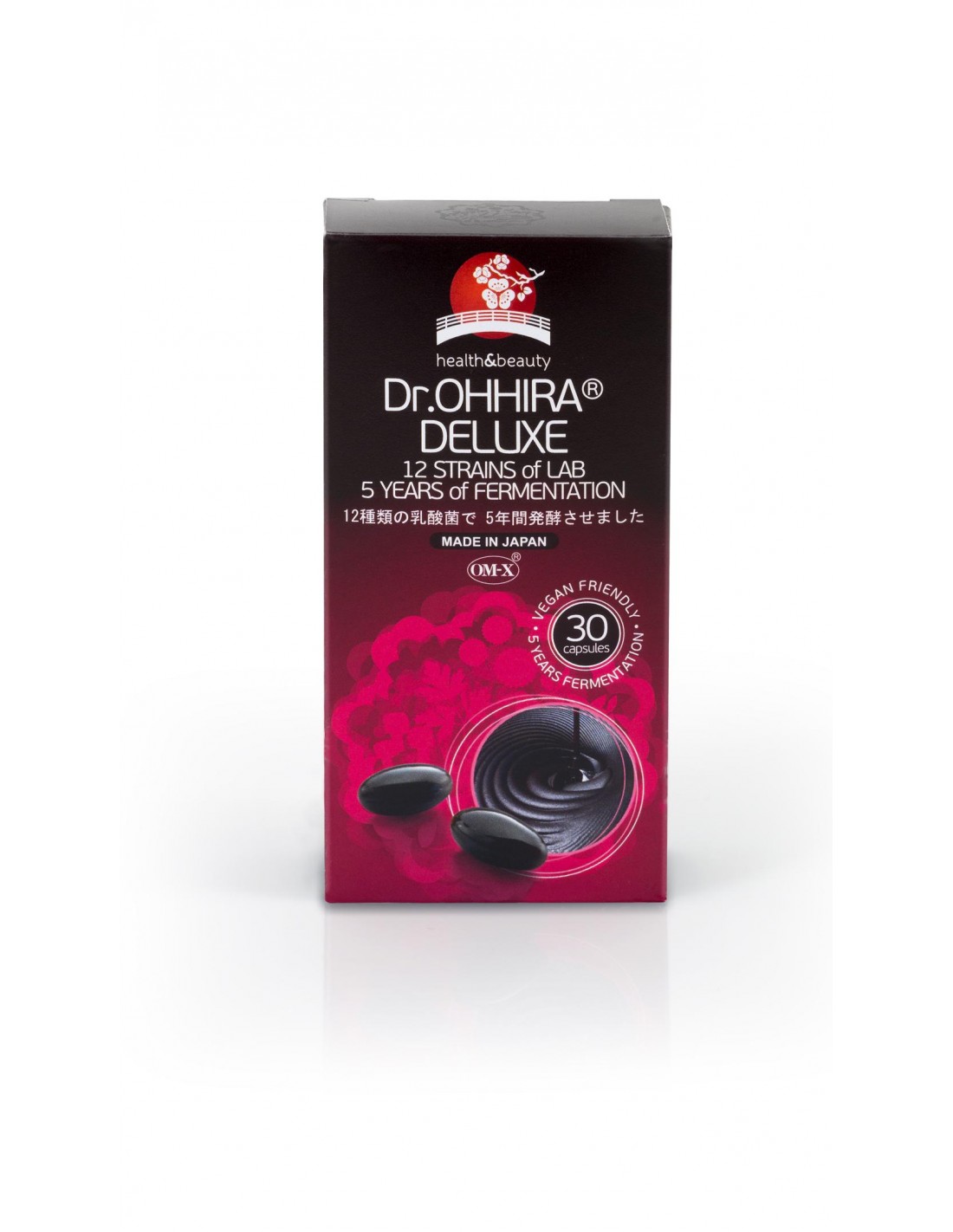 Dr.OHHIRA® DELUXE 5-AASTASE RETSEPTI maohappekindlates kapslites sisaldub ainulaadne 5-aastat looduslikult hapendatud OM-X® fermenteeritud köögiviljaekstrakt, mis on saadud puhtast Jaapani loodusest pärit taimede, seente ja vetikate hapendamisel koos 12 erineva ja kokkusobiva piimhappebakteri tüvega (Lactobacillus, Bifidobacterium, Streptococcus). Valmiskujul segu sisaldab kiudaineid, 12 erinevat sorti elusbaktereid ning nende elutegevuse käigus moodustunud orgaanilisi ühendeid. Peale kolmeaastast looduslikul temperatuuril hapendamist paigutatakse segu ümber suurtesse anaeroobsetesse kääritamistünnidesse edasiseks kaheaastaseks anaeroobseks fermentatsiooniks.
