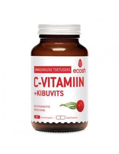 KOOSTISOSAD: C-vitamiin (L-askorbiinhape), kibuvitsamarja (Rosa canina) pulber, taimne kapsel (glaseeraine pullulaan).