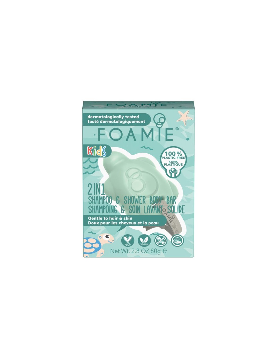 Foamie 2in1 plastikuvaba dušiseep muudab pesemise laste jaoks lõbusaks! See orgaanilist mandlit, niisutavat aloe verat ja provitamiin B5 sisaldav toode puhastab õrnalt. Lapsesõbralik tootedisain: püsib hästi käes ja sellel on ülesriputamiseks nöör.