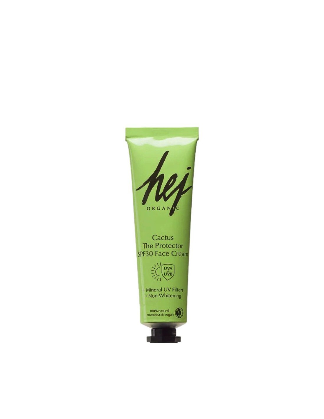 Hej Organic mõnusalt kerge päevakreem päikesekaitsega. Sobib igale nahatüübile. Mineraalne päikesekaitse imendub kiiresti. Ei jäta nahka valgeks. Sisaldab C-vitamiini ja hüaluroonhapet, mis kaitsevad nahka ja pakuvad lisaniisutust. 100% vegan ja looduslik.