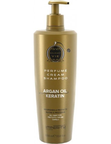 Imperity Gourmet VIE šampoon on luksuslik igapäevane juuksehooldustoode, mis sobib kõikidele juuksetüüpidele. Selle rikkalik koostis sisaldab keratiini, sheavõid, pantenooli, argaania-, babassu- ja linaseemneõli, mis tugevdavad, niisutavad ja kaitsevad juukseid, andes neile elujõudu ja läiget. Looduslikud ekstraktid nagu sarapuuleht, nõges, malva, kask, pajukoor ja saialill toetavad peanaha tasakaalu, juuste kasvu ning muudavad juuksed pehmeks ja kergesti kammitavaks. Šampoon on parabeeni- ja julmusevaba ning sellel on meeldiv, õrnalt magus La Vie Est Belle (VIE) lõhn, mis lisab juuksehooldusele nauditava elamuse.