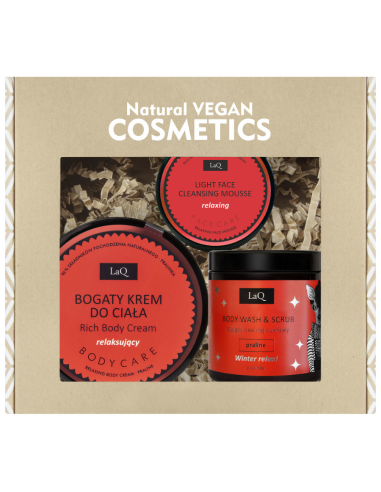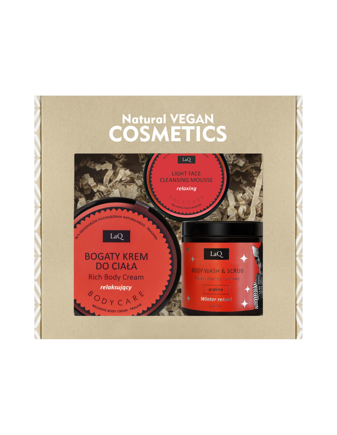 LaQ Praline Diamond vegan kinkekomplekt naistele on loodud neile, kes armastavad luksuslikku kehahooldust ja magusaid hetki iseendale. See elegantne kinkekomplekt ühendab endas tõhusad looduslikud kehahooldustooted ja lummava pralinee aroomi, luues koduses vannitoas tõelise spaaelamuse. Komplektist leiad siidise suhkrukoorija, rikkaliku kehakreemi ning õhulise näopesuvahu – kõik loodud hoolikalt valitud vegan koostisosadega, et pakkuda nahale õrna, kuid tulemuslikku hooldust.