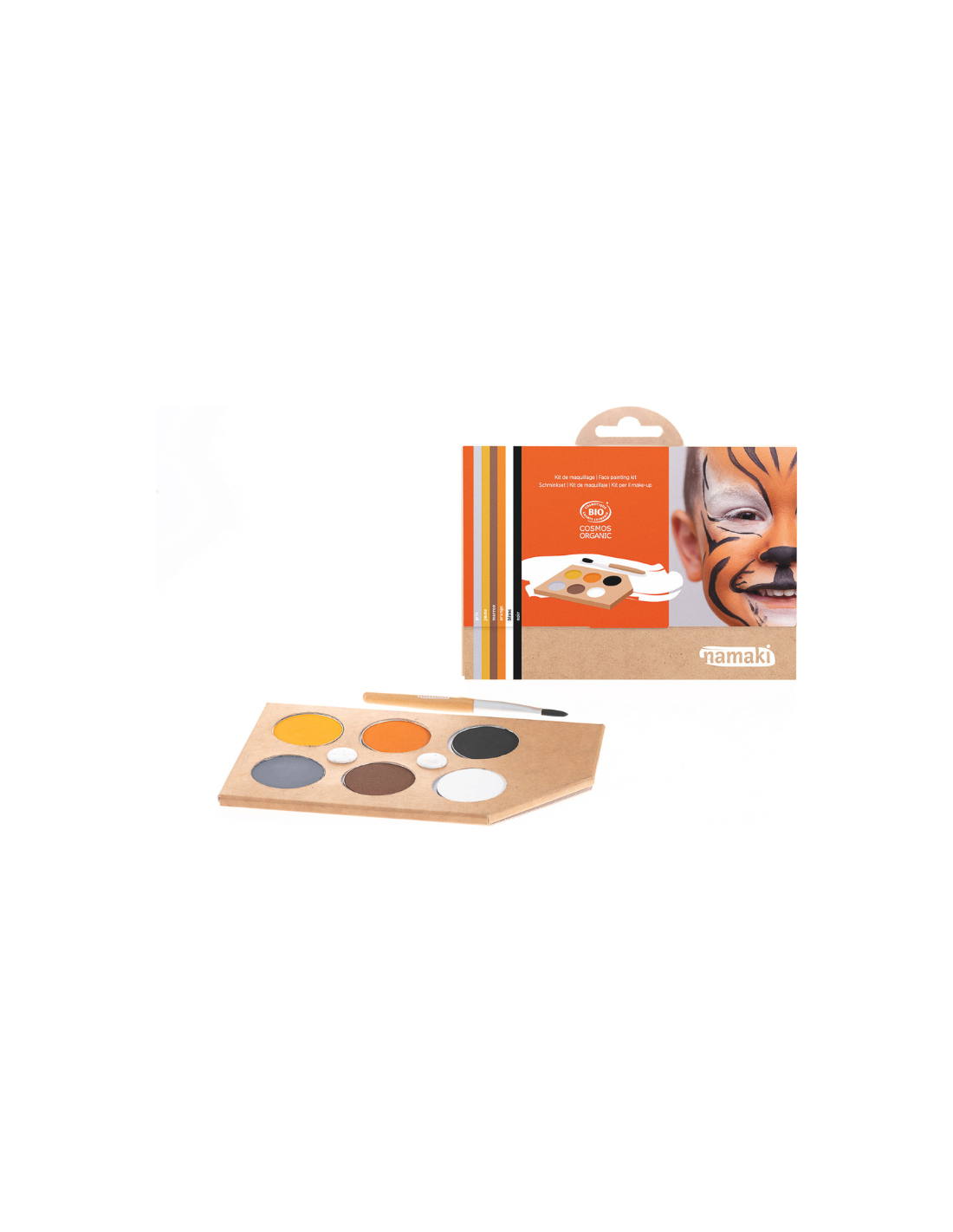Namaki “Wild Life” on 99% looduslikest koostisosadest valmistatud laste näovärvide komplekt, mis on nahale ohutu ja veega kergesti eemaldatav. Komplekt sisaldab 6 värvi – kuldne, valge, oranž, must, hõbedane ja kollane –, pintsli ja juhendi, kuidas luua erinevaid loovmustriga näomaalinguid.