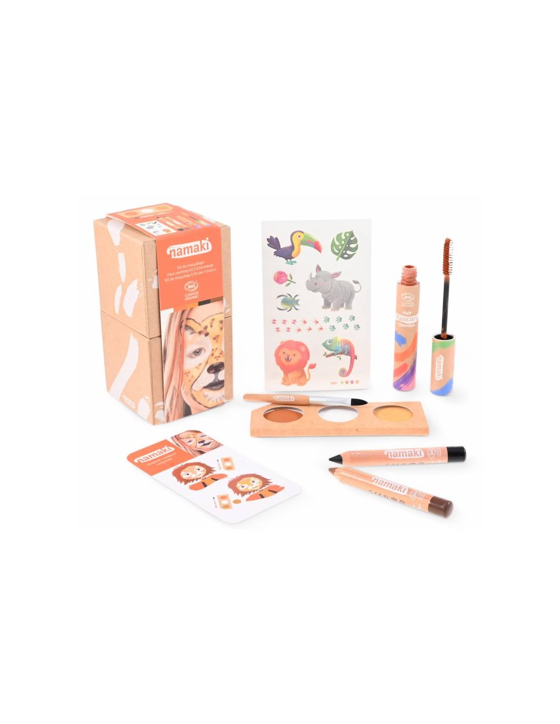Namaki “Wildlife” on looduslik ja ohutu laste näovärvide, juuksevärvi ja tätoveeringuga kinkekomplekt, mis on loodud loovateks ja fantaasiarikasteks mängudeks. Komplekt sisaldab kolme näovärvi (valge, oranž, kuldne), kahte pliiatsit (must ja pruun), oranži juuksevärvi ja ajutist tätoveeringut.