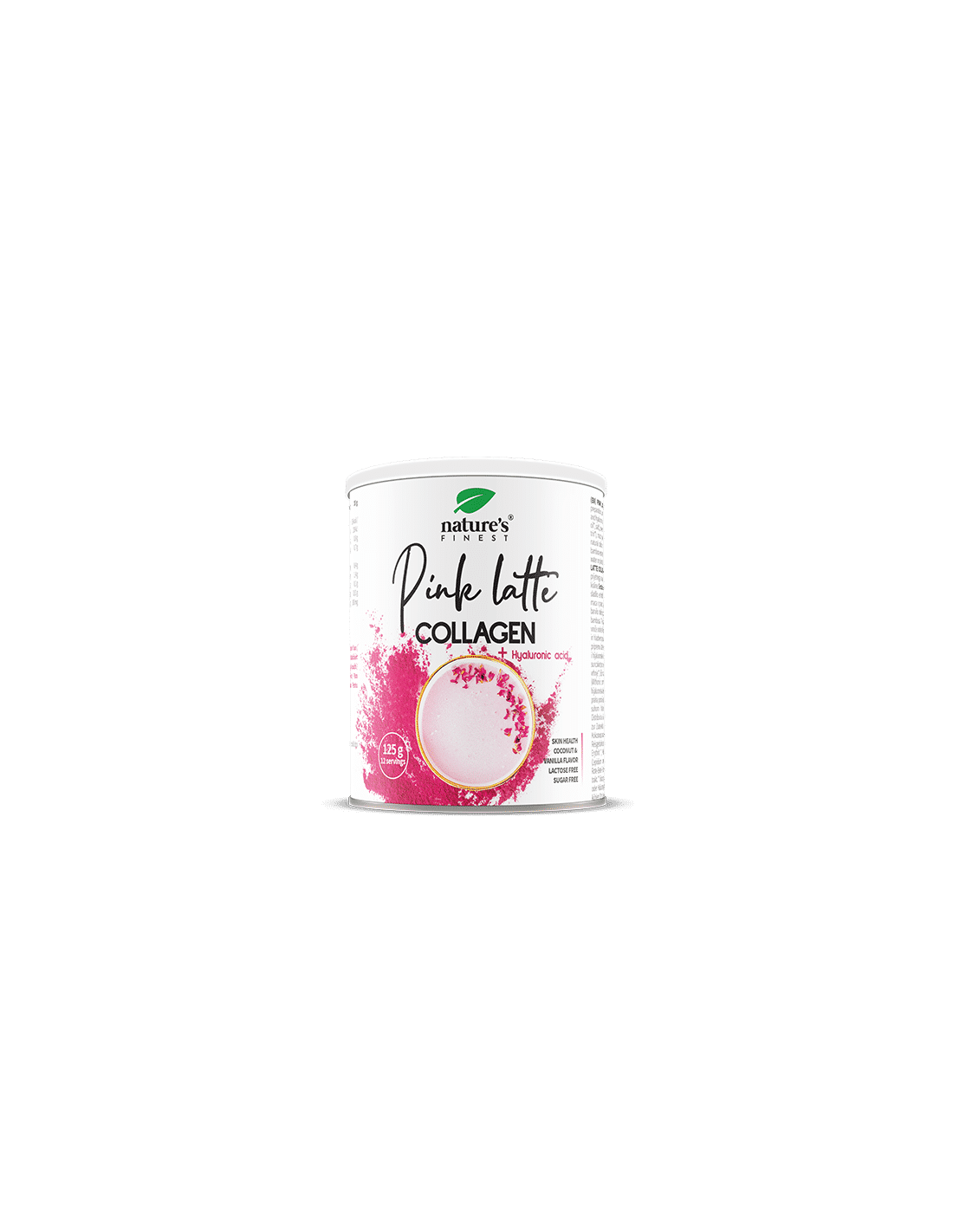 Kollageeni ja hüaluroonhappega segu roosa latte valmistamiseks. Meeldiva kookose ja vanilje maitsega.