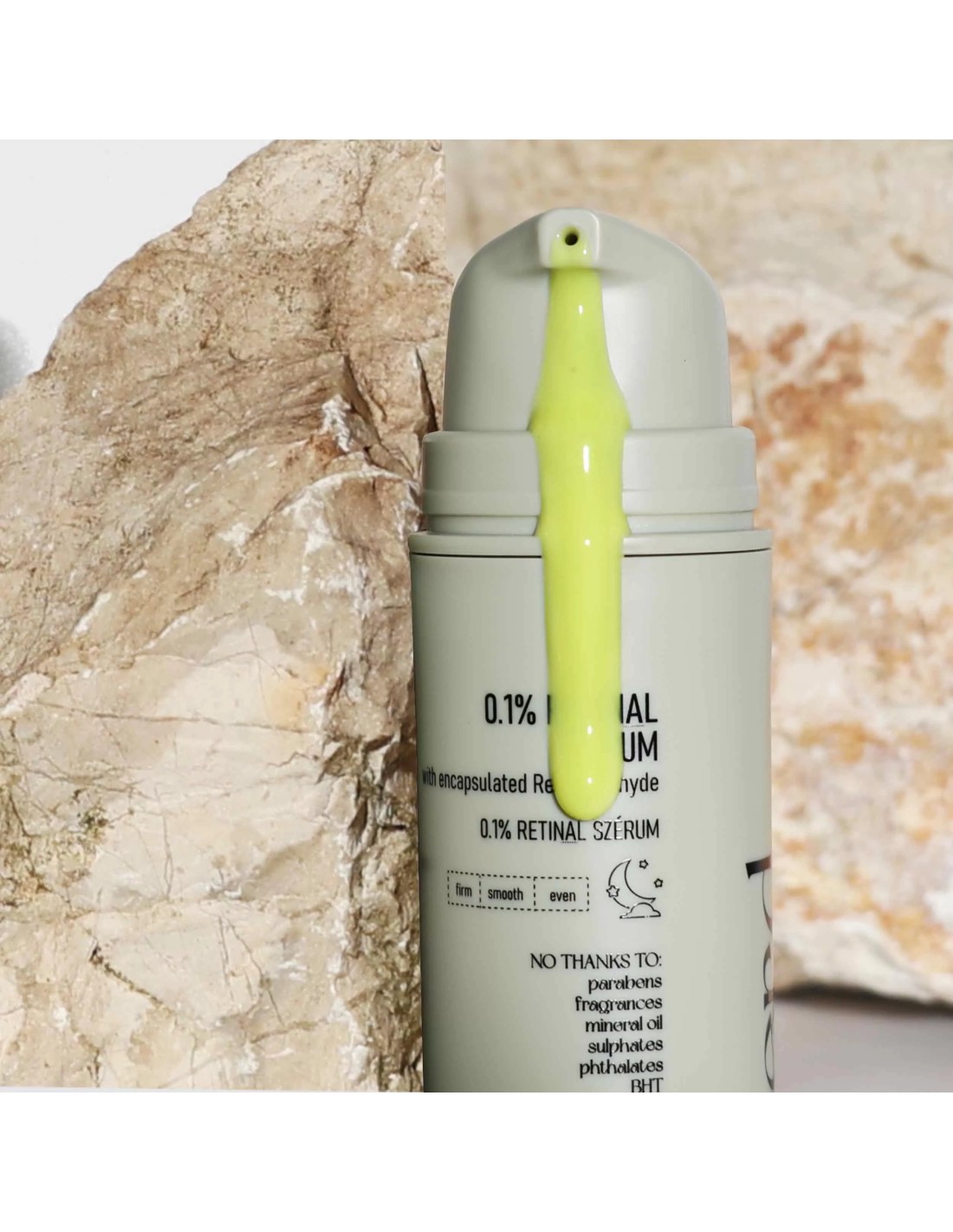 Avasta meie tulemustele orienteeritud seerum, mille keskmes on kapseldatud retinaldehüüd — tõhus ja innovaatiline retinoidi vorm, mis aitab silmnähtavalt vähendada peeneid jooni, kortse ja naha ebaühtlast tekstuuri. Retinaldehüüd muundub nahas otse retinoehappeks — aktiivseks A-vitamiini vormiks — pakkudes kiiremaid ja nähtavamaid tulemusi kui traditsiooniline retinool.
