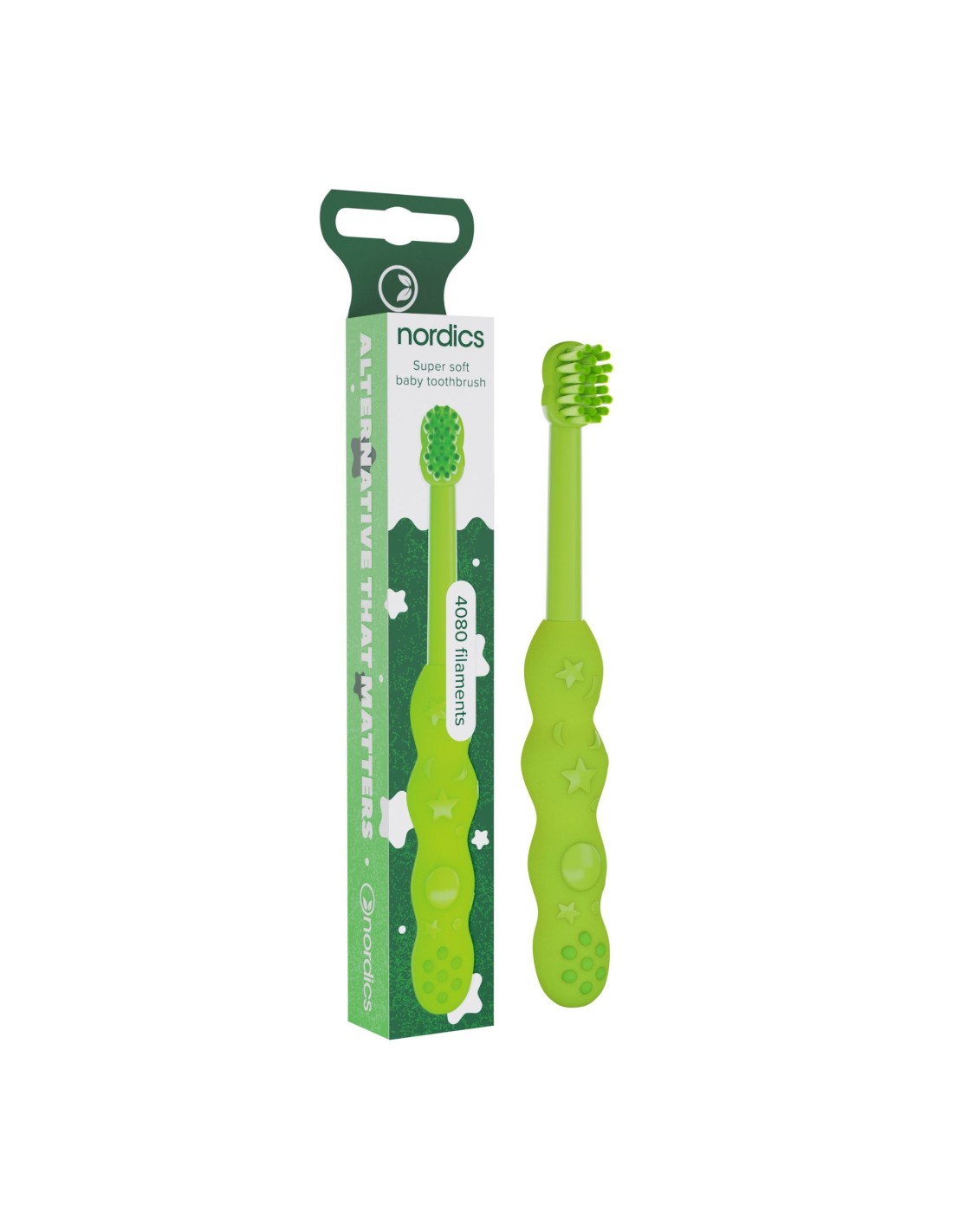 Nordics - "BABY" ülipeenete harjastega hambahari imikutele ja väikelastele GREEN