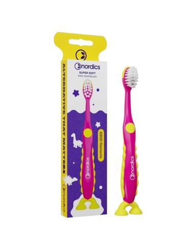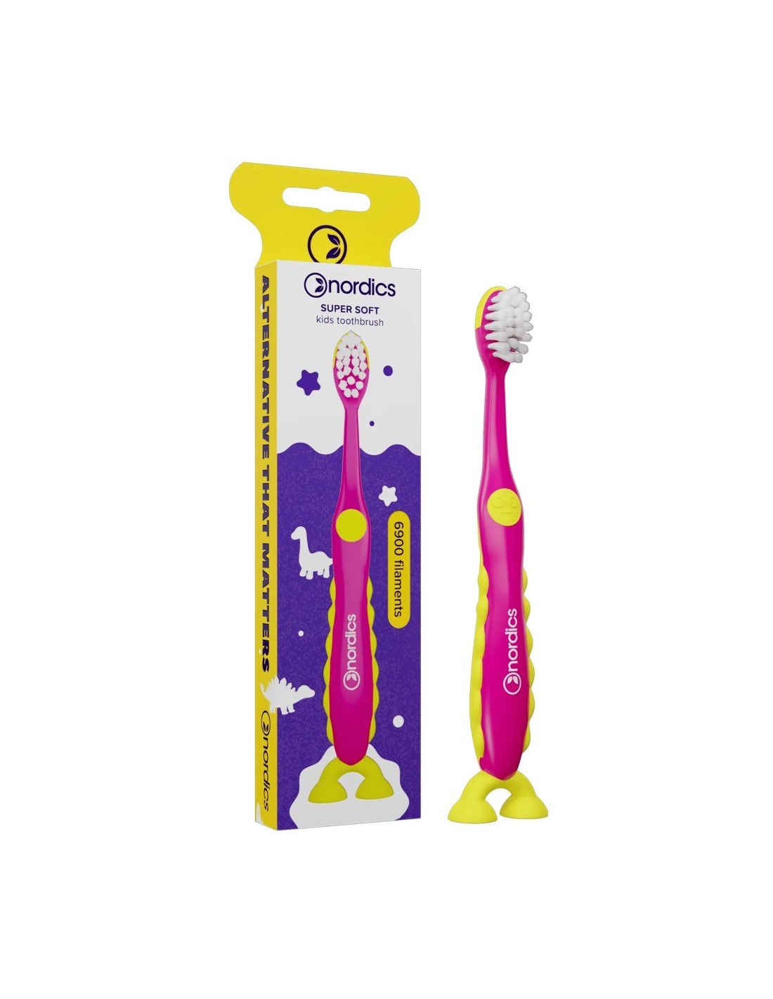 Nordics DINO PURPLE hambahari on loodud spetsiaalselt väikestele lastele alates 2. eluaastast – vanuses, kus tekivad esimesed harjumused iseseisvaks hammaste pesuks, kuid kus õrnus ja ohutus on endiselt kõige tähtsamad.