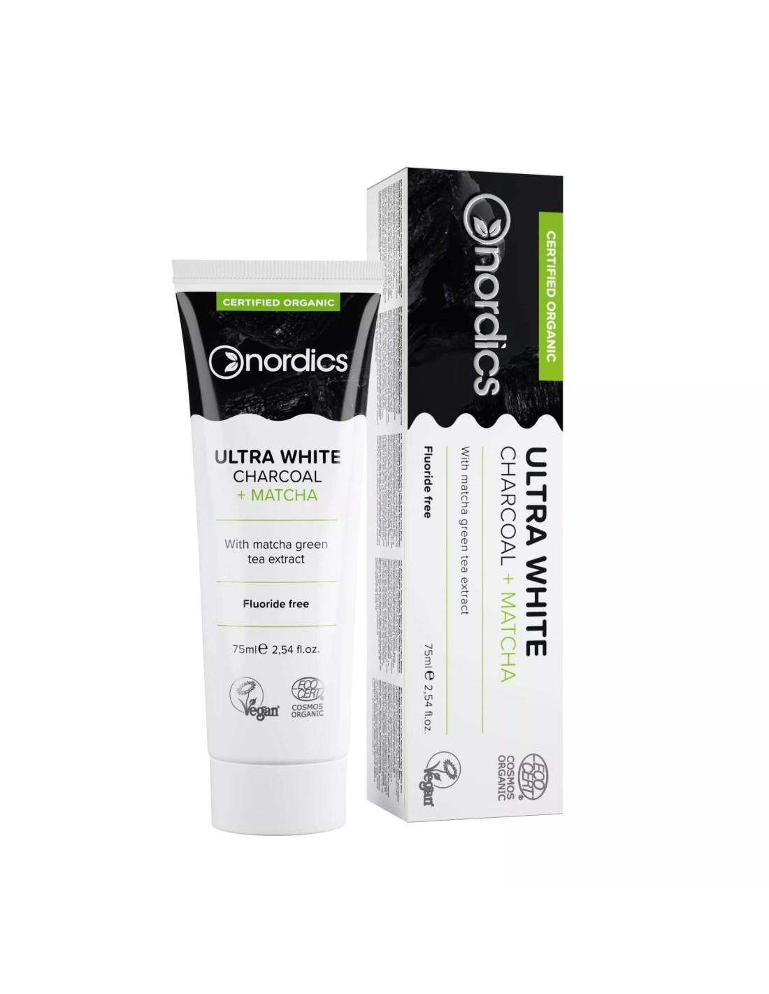 Nordics valgendav hambapasta matcha ja aktiivsöega (75 ml) on loodud neile, kes soovivad hambaid looduslikult, õrnalt ja tõhusalt valgendada. Peamised koostisosad on aktiivsüsi, mis eemaldab tõhusalt hammaste plekid (nt kohvist, teest või punasest veinist) ilma emaili kahjustamata, ning matcha, mis on rikas antioksüdantide poolest, toetab igemete tervist ja aitab hoida suu värskena.
