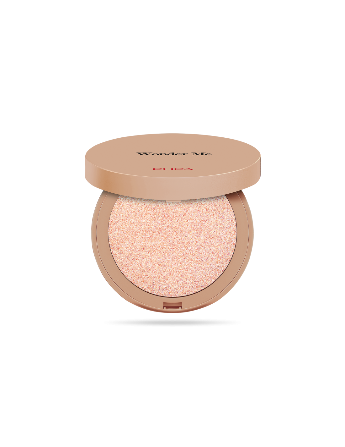 Wonder Me Glow on hübriidne kompaktne highlighter, millel on erakordselt märkamatu tekstuur, mis sulandub nahaga vedelale highlighterile omase kerge tunde ja säraga.