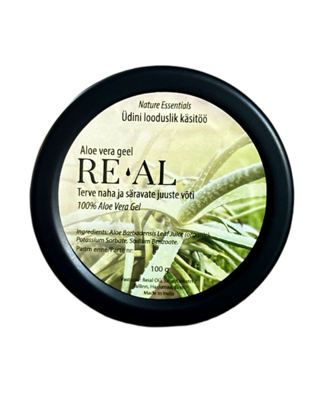 Reial aaloe geel 100g on looduslik nahahooldustoodete täht, mis ühendab endas sügavniisutava hoolduse ja mitmekülgse kasutusvõimaluse nii näole, kehale kui juustele. 100% orgaanilisest aloe vera mahlast valmistatud geel on rikas toitainete, vitamiinide ja antioksüdantide poolest, pakkudes nahale tõhusat niisutust, rahustust ja kaitset. Tänu oma põletikuvastastele ja jahutavatele omadustele sobib see suurepäraselt päikesepõletuse leevendamiseks, vistrike rahustamiseks, kuiva naha turgutamiseks või peanaha hoolduseks.