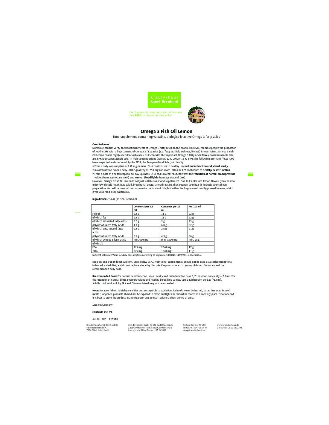 Sanct Bernhard - Omega-3 kalaõli sidruniga - koostis