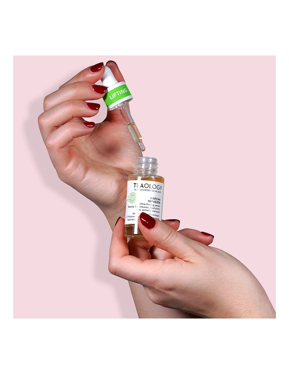 Unikaalset meetodit kasutades ekstraheerime erinevate orgaaniliste teede toimeained kuuminfusioonil kasutades teetaime (Camellia Sinensis) terveid lehti. Teetõmmis on antioksüdantsete polüfenoolide kontsentraat ja ehtne naha nooruse eliksiir. Tea Infusion Skincare® mille väärtust väljendab valem 0% vett / 100% orgaanilist teed.