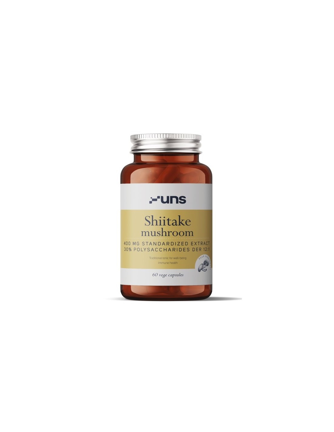 1 portsjon (1 kapsel) sisaldab 400mg shiitake (Lentinula edodes) ekstrakti (min. 30% polüsahhariide – 120mg).